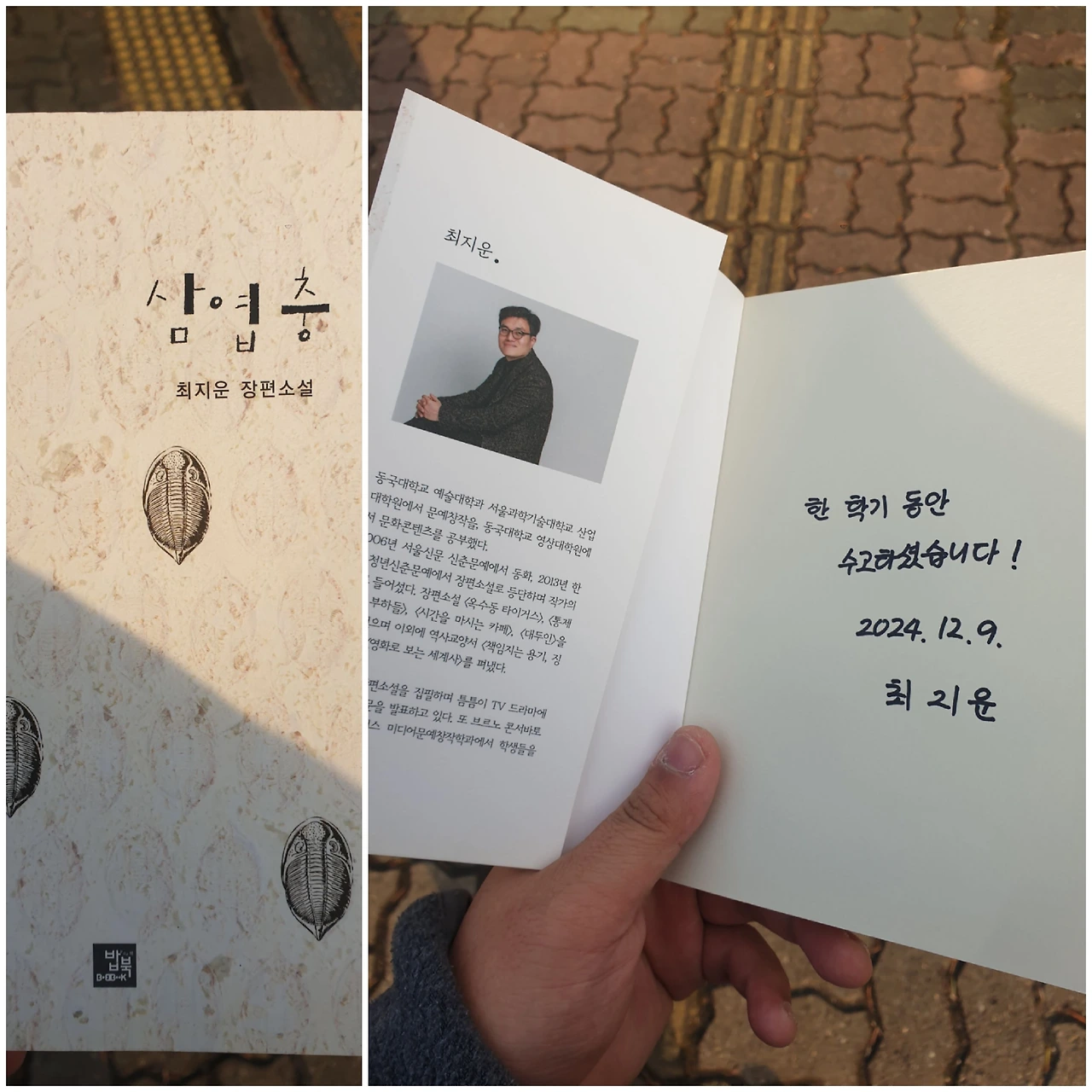 아무래도 교수님이 소설가이시다 보니, 자신이 집필한 소설책을 선물로 주셨습니다.