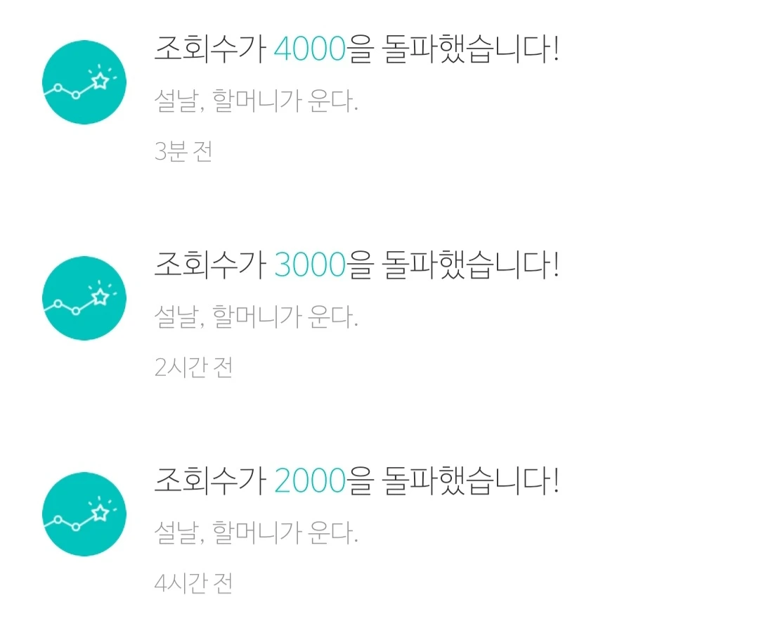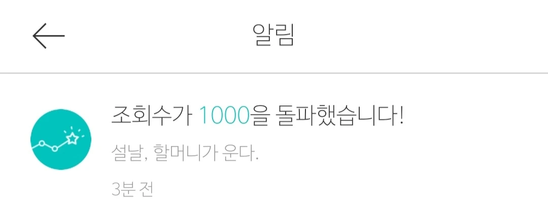 난생처음 이렇게 "조회수 1000"이라고 알람 보고, 순간적으로 큰소리 지르며 아주 난리를 쳤네요.