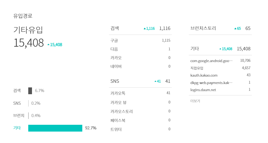 유입 경로를 보면 알 수 있듯이, 구글을 통한 유입이 압도적으로 많았습니다.