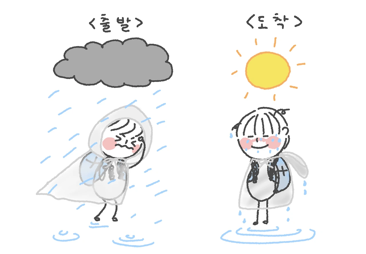 끝없이 이어지는 비를 뚫고 드디어 알베르게에 도착하자, 마치 누가 장난친 것처럼 하늘이 맑게 개었다. 파란 하늘 아래 햇살이 쏟아졌다. 날씨가 얼마나 좋아진 거 냐면 젖은 신발도 그날 안에 모두 말랐다. 도착했을 땐 온몸이 젖고 눈동자엔 영혼이 없었다. 그런데 이게 무슨 일인가! 빠예야를 앞두고 햇살이 쨍쨍! 누가 말했다. “이런 게 바로 인생이야.” 그땐 그 말에 공감이 됐는데, 지금 와서 생각하면 조금 오글거린다. 왜냐하면 2주 후, 재난 수준의 태풍을 또 한 번 뚫고 걷게 되니까.