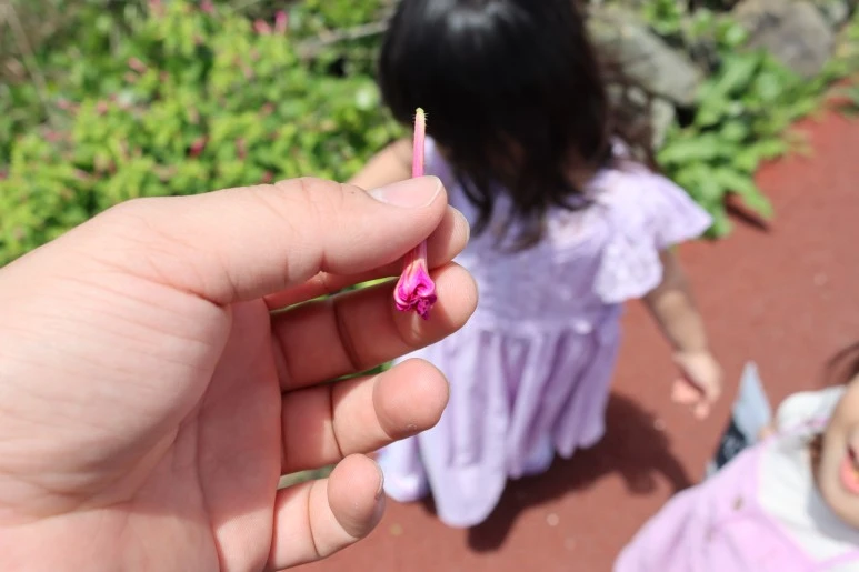 길을 걷다가 낯익은 꽃을 발견했다. 어린 시절 대충 비슷하게 생긴 꽃 뽑아다가 끝을 '쪽~쪽~' 빨아먹으면 꿀처럼 달달한 맛이 났던 기억이 있었다. 아이들에게 재밌는 걸 보여주고 싶었다. 꽃을 따다가 몇 개를 혀에 대어보았다.