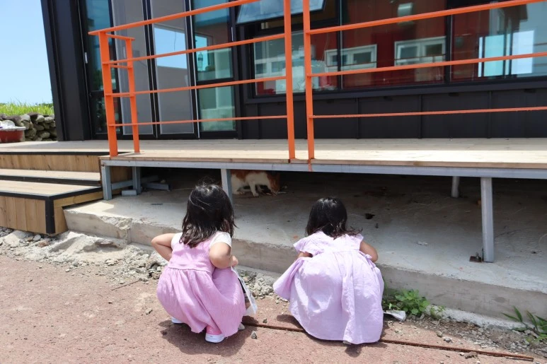 선착장을 내리자마자 다율이가 화장실이 급하다고 한다. 바로 앞에 카페로 보이는 곳으로 뛰어갔다. 다율이가 볼 일을 보자, 카페에서 아이스크림을 본 듯 아이스크림을 연신 외친다. 나는 보이지 않는 것들이 아이들에게는 정확하게 포착됐나 보다. 나는 어리바리 아이스크림을 찾느라 이 곳 저곳을 뛰어다녔다. 다율이는 아빠의 모습을 보고 위치를 알려준다.