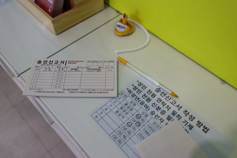 대략 완전 군장한 군인의 모습을 하고 승선 신고서를 작성하니 매표소가 보였다. 줄은 많지 않았다. 아무래도 요즘 시기가 시기다 보니 사람들의 외출이 거의 없는듯 했다. 어렵지 않게 매표를 마쳤다.