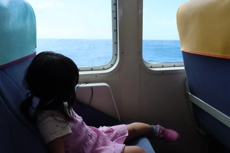 승선 신고서를 써야 했다. 간단한 노트북과 커다란 DSLR 카메라, 그리고 아이들 가방과 내 가방을 어깨 이곳 저곳에 들쳐 매고 마지막으로 아이들의 애착이불을 어깨에 들쳐 맸다. 군 시절 유격을 마치고 돌아오는 천리행군이 따로 없구나. 당시 완전군장을 하고 걷다보면 내가 밟는 바닥에 공룡 발자국처럼 흔적이 남을 것 같은 기분이 든다. 이토록 무거운 짐을 들고 그리고 양손에 아이를 잡고 여행을 갈 수 있을까 싶었다.