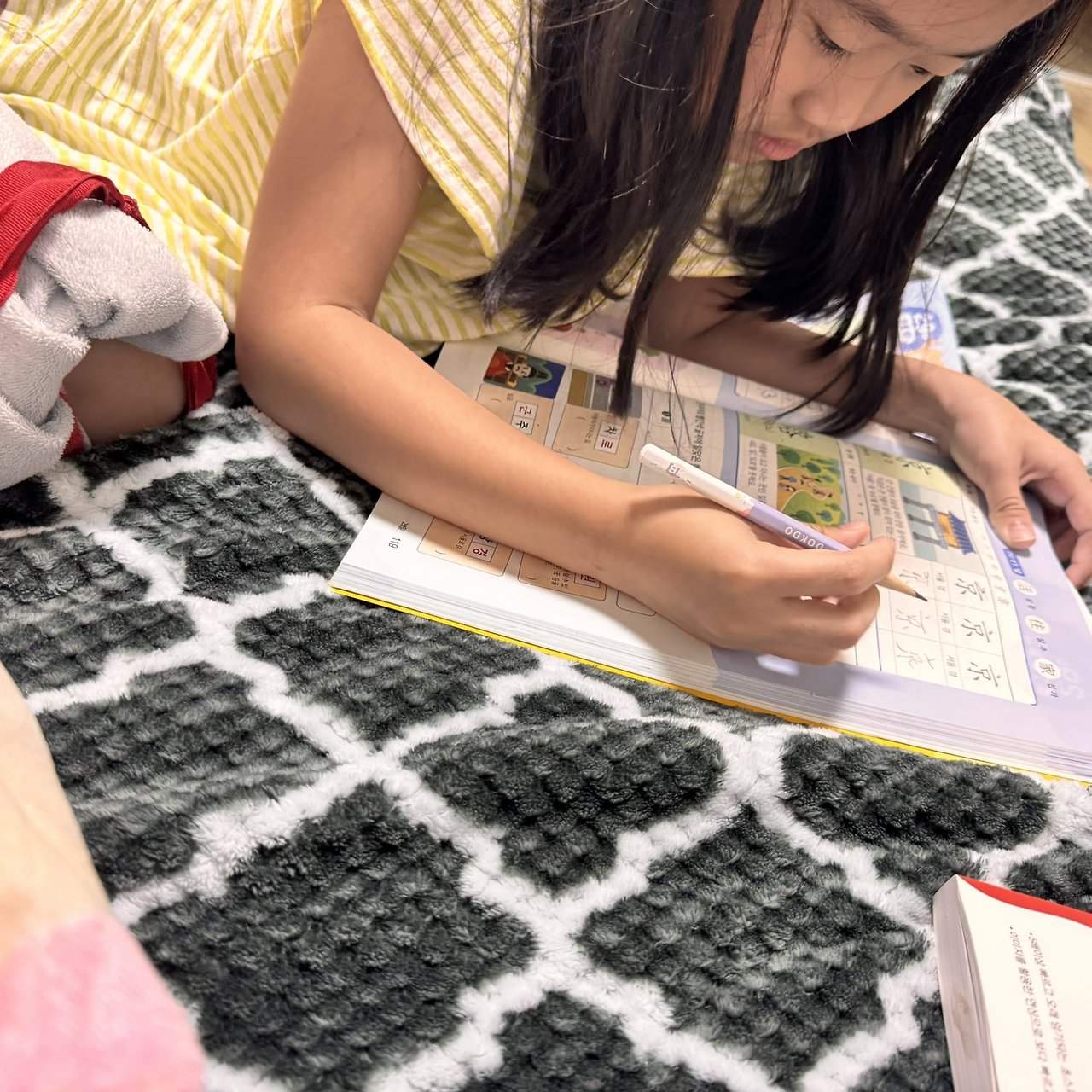 영어 단어 10개, 수학 두 장, 한자 4자를 하는데 길어도 30분에서 한 시간이다.