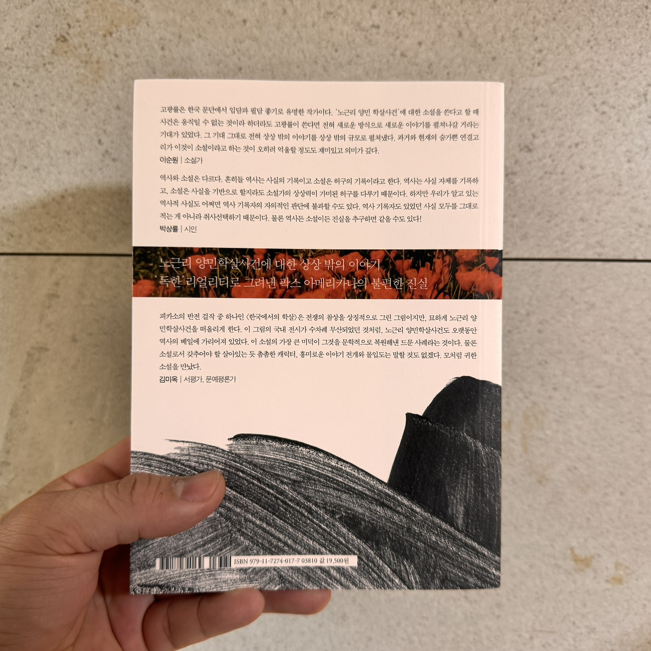 고광률 작가의 붉은 그늘은 1950년 한국 전쟁 당시 노근리 양민학살 사건을 그린다. 이 사건을 통해 집단 폭력과 책임을 묻는다. 소설 속 하지스는 군인의 명령과 인간으로써 양심 사이에 갈등을 겪는다. 그의 내적 독백이 비극의 본질을 직시하게 만든다.