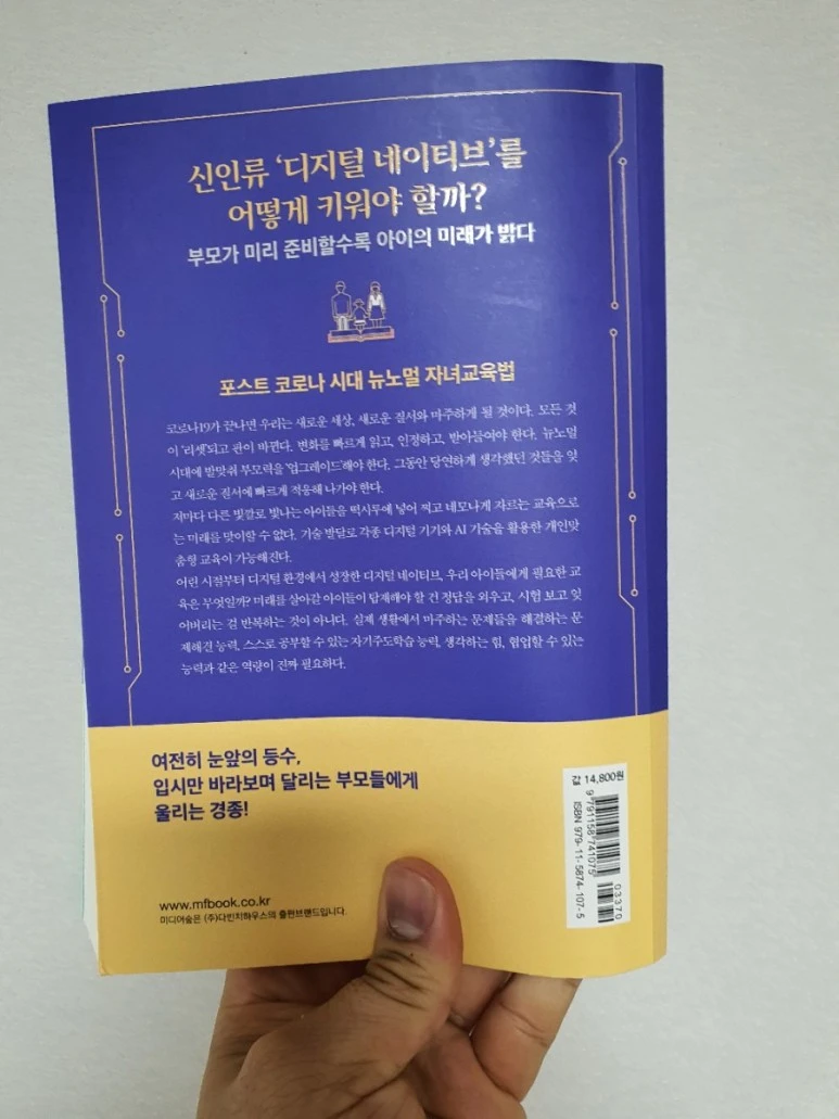 책은 미래를 살아갈 우리 아이를 위해 '부모력'을 점검해야 한다고 말한다. 코로나 19라는 큰 사회적 변화는 재앙이기도 하지만 일부 선구자들만이 선제조치를 할 수 있던 변화들이 일반인들도 대비할 수 있게 했던 큰 기회일지도 모른다. 이제 코로나 19로 앞당겨진 디지털 시대에 우리 아이들을 디지털 수요자로 키울 것이 아니라 공급자가 되어 사회를 주도해 나갈 수 있도록 뉴 노멀을 준비하는 자녀교육을 해야 한다. 나는 책을 읽고 책의 내용을 절때, 요약정리하여 포스팅을 하지 않는다. 그 이유는 앞서 설명한 것과도 일맥 한다. 누구나 베껴쓰기는 가능하다. 하지만 새로운 자극이 나의 머리를 훑고 지나가며 만들어낸 변화의 생채기에 나만의 정보와 새로운 정보를 융합하여 새로운 형태로 만드러 내는 능력이 미래에 더 중요하다. 부모인 내가 먼저, 실천하여 우리 아이들에게 독서 능력과 독후감 작성 능력을 알려주는 것은 비트코인이나 부동산처럼 당최 이유를 모르고 갖게 된 출처 불분명한 '부'가 아니라 스스로 출처가 확실한 부와 행복을 가질 수 있는 주체적인 삶을 살 수 있게 하는 자산인 셈이다.