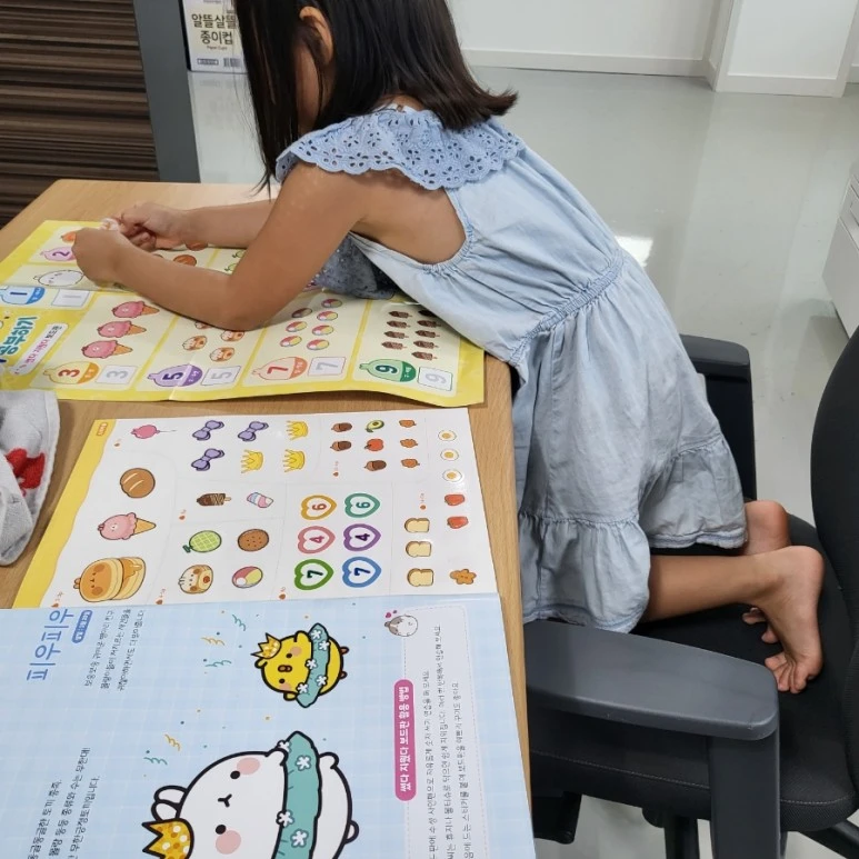 아이가 갑자기 '숫자놀이책'을 사야겠다고 한다. 자야 할 시간인 저녁 9시, 아이와 서점으로 갔다. 일주일에도 수 번을 방문하는 서귀포 '우생당'에 가니, 아이가 책을 고른다. 아이와 한 참을 수준에 맞는 책을 고른다. 결국 아이와 내가 합의한 책은 '몰랑 숫자 공부'와 '몰라 한글 공부'다. 책을 펴니 아이들이 공부할 수 있는 책 사용 설명서가 있다. 책 사용 설명서는 따를 필요없다. 그냥 스티커를 붙여야 하는 곳에 그림을 그리고, 그림을 그려야 하는 곳에 스티커를 붙이도록 놔두었다. 아이들은 한참을 숫자놀이와 한글놀이를 한다. 몰랑이는 색이 단순하고 모양이 단조롭다. 아마 아이들의 인지 수준에 적합한 캐릭터일 것이다. 과하게 복잡하거나 과한 색이 있지 않다. 아이들은 편안하게 캐릭터를 받아들인다. 아이에게 '모나리자'같은 그림을 보여주게 하는 것보다 훨씬 더 감성발달에 이롭다고 여긴다. 책이 구겨지고 찢어지져도 괜찮다고 말한다. 창작자 입장에서는 '보존'보다 '이용'이 훨씬 값진 것이다. 아이들이 신나게 가지고 놀다가 책장에 집어 넣고 언젠가 다시 인지수준이 맞아 떨어질 때 꺼내 보면 좋다. 1쪽부터 차례대로 볼 필요도 없다. 펴진 곳에 아무렇게나 하다가 덮어도 좋다. 제작자가 원하는 방향대로 사용하지 않아도 좋다. 사용자가 편하게 이용하면 그만이다. 아이들이 책에 첨부된 스티커를 가지고 재미나게 논다. 애초에 6살이다. 공부가 무슨 소용인가. 시간이 지나면 자연스럽게 완성되는 '자연'에게 양육을 맡기고 임계점에 적절히 마중물을 대줄 수 있도록 지켜보자.
