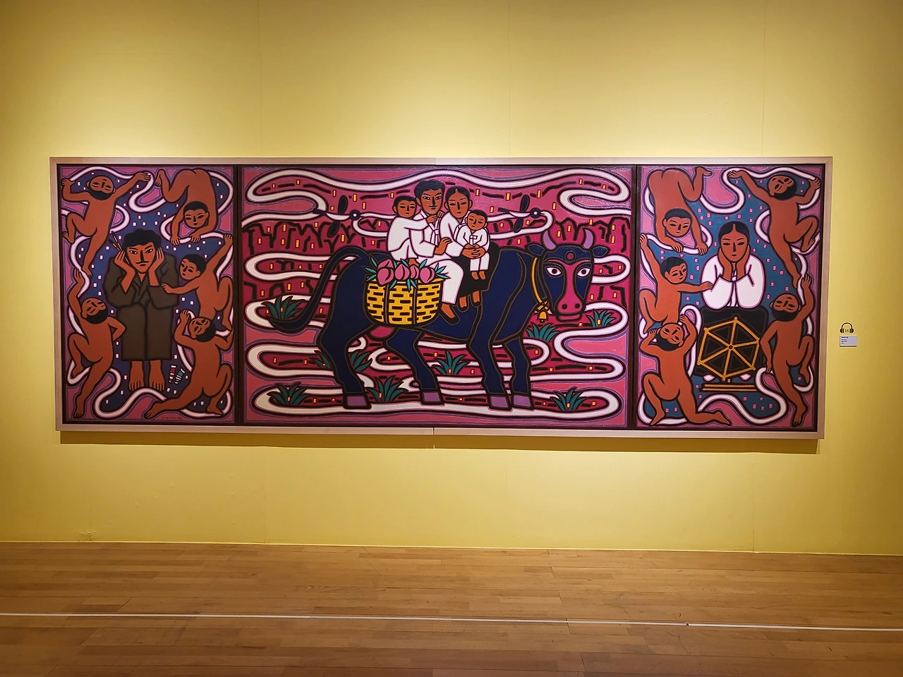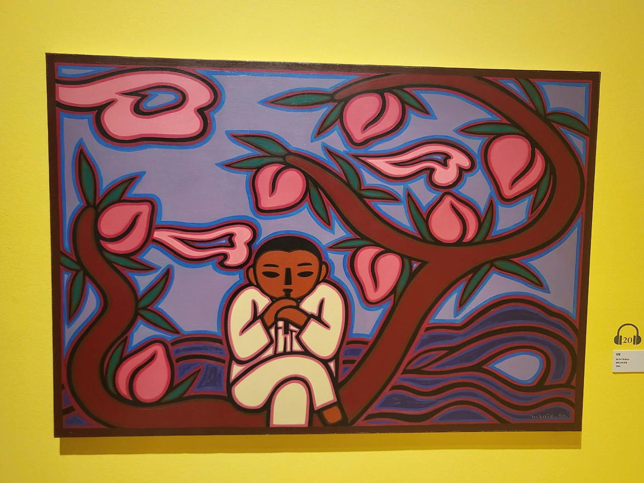 난 분홍 복숭아가 있는 그림이 좋다. '망향'이라는 그림인데 작가가 고향을 그리워하는 그림이라 했다. 따뜻한 느낌을 주는 이 그림이 제일 마음에 든다. 그외 대작들도 좋았고 이중섭을 기리며 그린 '이중섭의 귀향'도 맘에 들었다.
