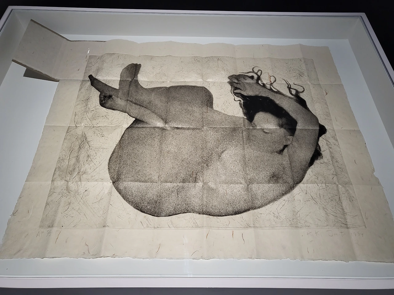 그녀의 다양한 작품을 보다 보면 재료의 한계가 없다. 종이, 유리, 직물, 청동, 은, 금박, 실크, 잉크, 유리구슬, 철사 등. 그녀는 자신의 예술활동을 '정원 거닐기'라 했다. 정원 거닐기는 산책 아닐까. 정해 놓은 길 없이 이리저리 산책을 하다 보면 많은 상상이 떠오르고 공상, 꿈, 현실, 비현실이 머릿속에서 종횡무진한다. 가장 여유로운 시간, 구속받지 않는 시간이 정원 거닐기이다. 그래서 자유 낙하 아닐까. 자유롭게 부유하고 떠돌아다닐 수 있는 시간이 정원 거닐기,산책을 하다 보면 키키 스미스, 그녀가 생각날 것 같다. 떠오르는 무언가를 그녀는 만들고 그리고 붙이고 새겼다. 온몸으로 뒹굴었다. 예술과 하나가 된 그녀. 그녀와 함께 산책하고 싶은 사람은 서울시립미술관으로 가면 된다.