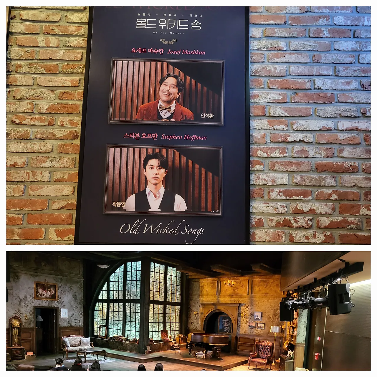 대학로에 가면 이곳저곳 골목에서 불어오는 바람 때문에 항상 춥다. 가뜩이나 혼자 돌아다니는데 바람까지 차가워서 더욱 외로움이... 젊음이 떼를 지어 깔깔거리며 다니는데 맨날 가도 길 모르는 길치는 오늘도 헤맨다. 따스한 햇살이 있는 곳에는 공연 전 대기하는 사람들이 둘, 셋 모여 있거나 늘어서 있다. 음악극 '올드 위키드 송'은 어떻게 진행될까? 올드 팝송이 많이 나오는 것 아닐까? 예상과 빗나갈 때 더 재밌다. 역시나 180도 빗나갔다. 팝송이 아니라 가곡이 나왔다. 존 마란스의 작품으로 2인극으로 유명하다고 한다. 2016년에도 안석환배우가 나왔고 연출은 김지호인데 이번에도 같은 연출자가 진행한 극이고 안석환을 보러 갔다. 능청스럽게 연기를 잘하지 않나. 서현철배우 연기도 좋아하는데 오늘의 픽은 안석환과 곽동연. 2인극은 배우들의 대사량이 엄청나다. 그리고 연기력으로 승부를 내야 한다. 무대에 너무 많은 사람이 나오는 것보다 두세 명 나오는 극이 재미있는 게 많다.