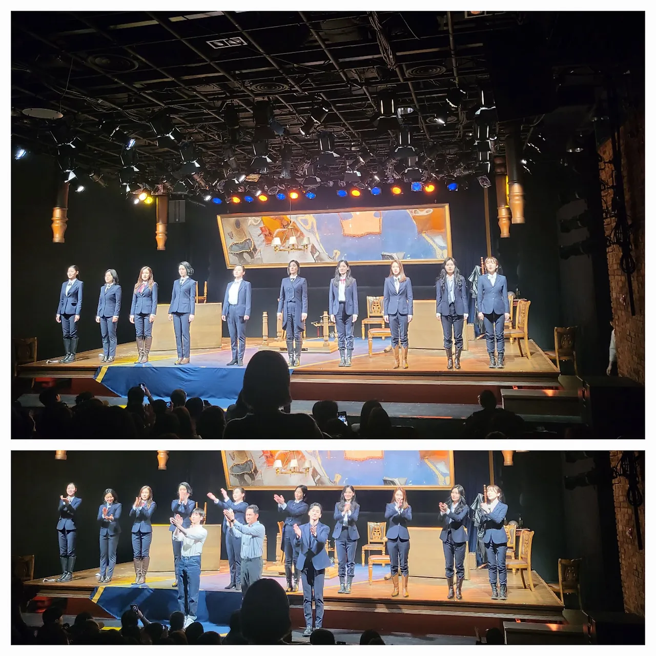 연극을 보면서 좀 더 한국적 색깔을 입혔더라면 더 재밌을 것 같다는 생각이 들었다. 번역된 외국작품을 좀 각색하여 우리나라 현실상을 반영하면 더 쉽게 이해되는데 외국상황을 그대로 가지고 오면 이질적인 부분 때문에 빨리 흡수가 안 될 때가 있다.