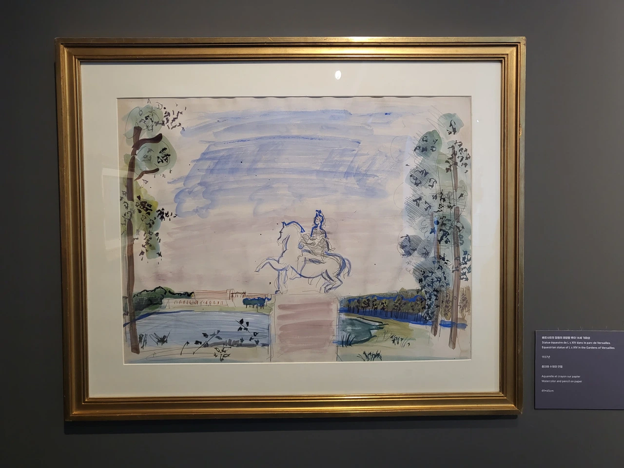 프랑스 화가 라울 뒤피((1877~ 1953)는 일러스트, 판화, 회화, 패션, 도자기 작품활동을 했다고 한다. 그의 작품을 처음 보면 아이 낙서 같기도 하고 미완성 작품 같기도 하다. 미술시간에 이렇게 그렸다가는 선생님에게 된통 혼 날 것 같은 그림들이다. 아무 데나 선을 주욱주욱 그은 것 같기도 하고 색칠도 군데군데 칠하다가 만 것 같기도 하다. 잎들도 밖으로 나와서 날아다니는 것 같다.