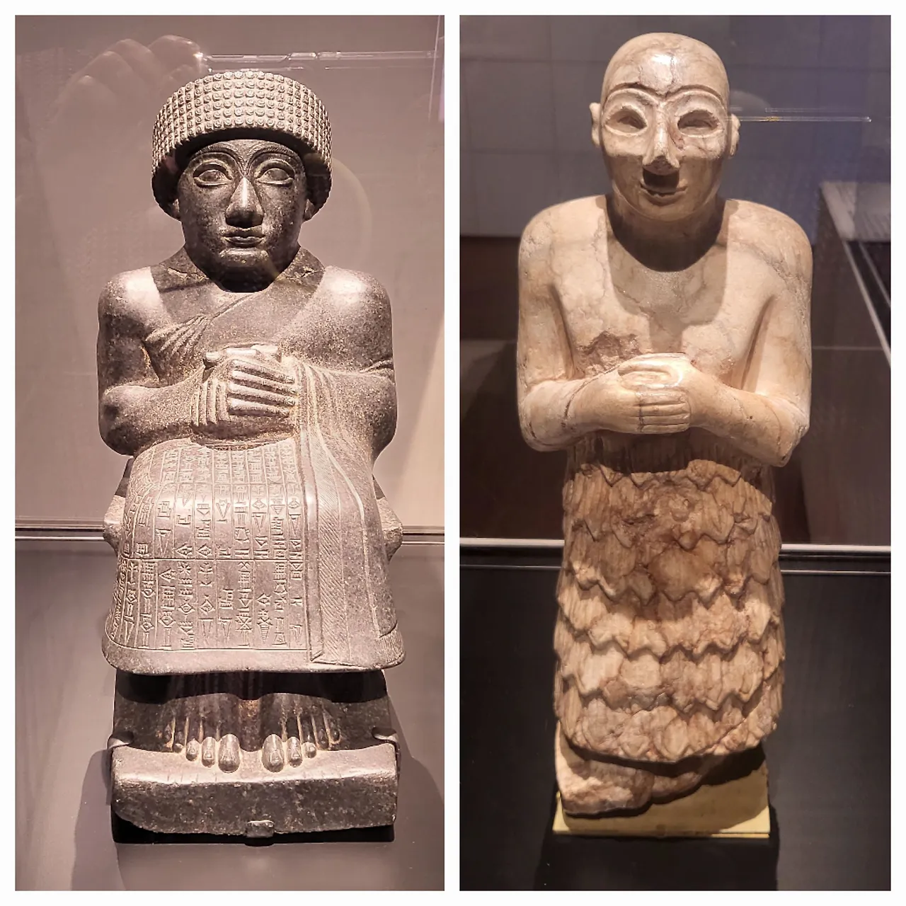 조각상은 키가 크지 않은 장식용으로 적당한 크기이다. 그런데 눈에는 조개껍데기나 청금석, 귀금속으로 장식했을 것이라고 한다. 왕을 조각한 조각상에도, 신에게 봉헌한 조각상에도 눈알이 빠져있어서 괴기스러워 보인다. 눈이 반짝이면 훨씬 아름다웠을텐데.