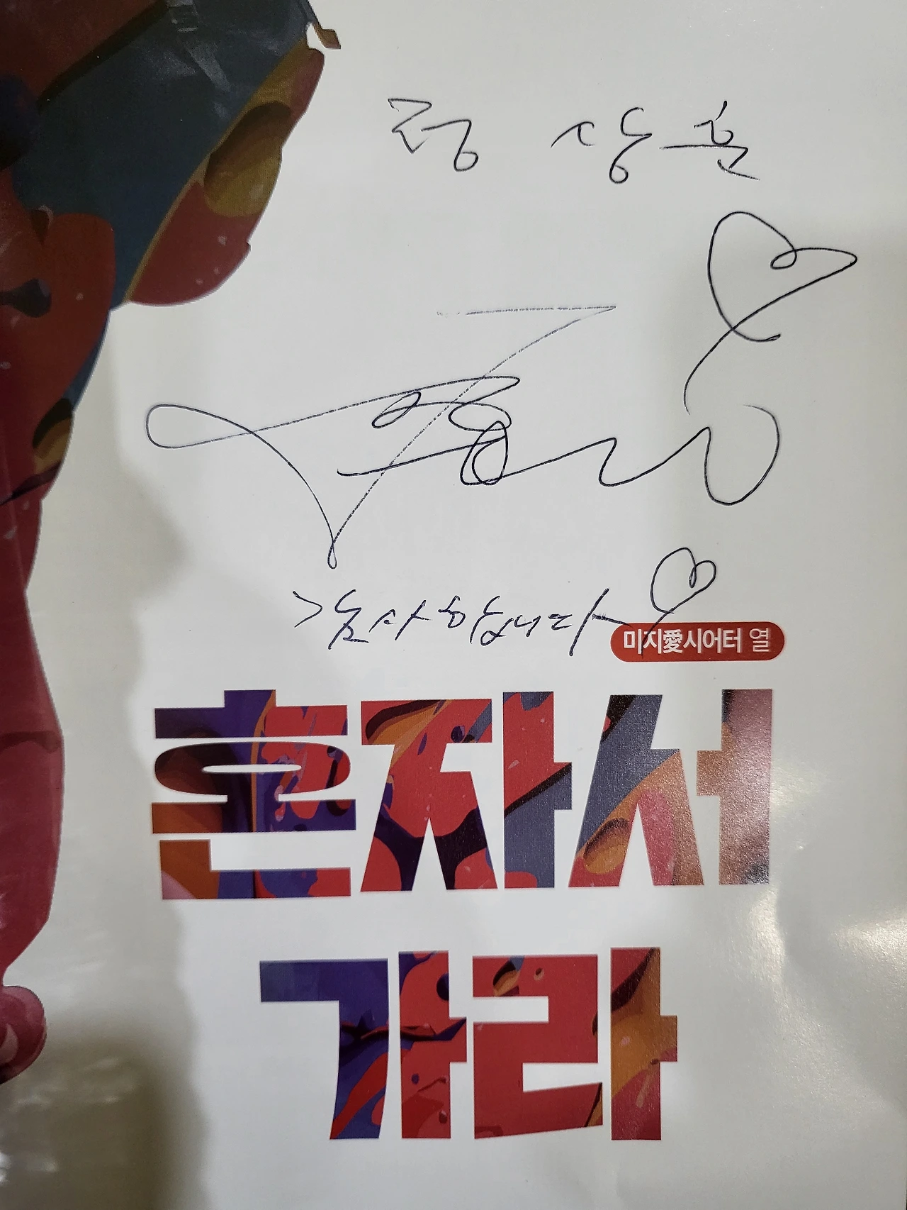 얼마 전 '회수조'에 출연한 '정상훈 배우'가 연출한 작품인데 처음으로 배우에게 싸인을 받아봤다. 쑥스럽게도. 올해 히스토리 보이즈에서 '정상훈'배우를 인상적으로 보았다. 그래서 찾아보는 배우. 응원, 지지하는 배우 1명이 추가되었다. 내일이 막공인데 1월에 앵콜 공연시 직접 마귀로 출연한다고 하니 또 가서 보고 싶다.