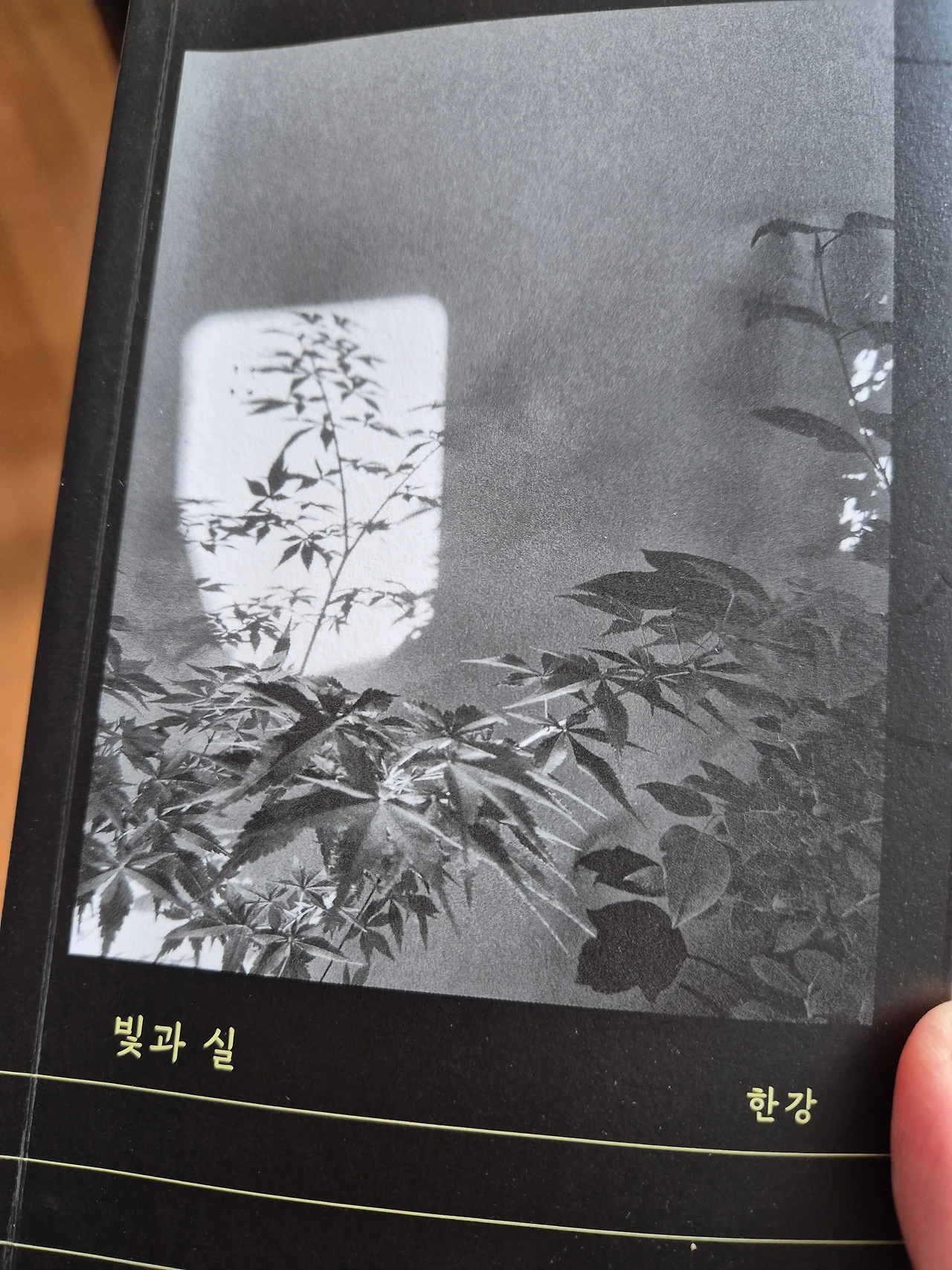 한강의 수필 '빛과 실'을 카페에서 읽었다. 그의 책 표지에 있는 사진을 보면 빛과 어둠이 있다. 네모난 빛은 어디서 올까 생각했는데 책을 읽어보면 그 사진의 비밀을 알 수 있다.