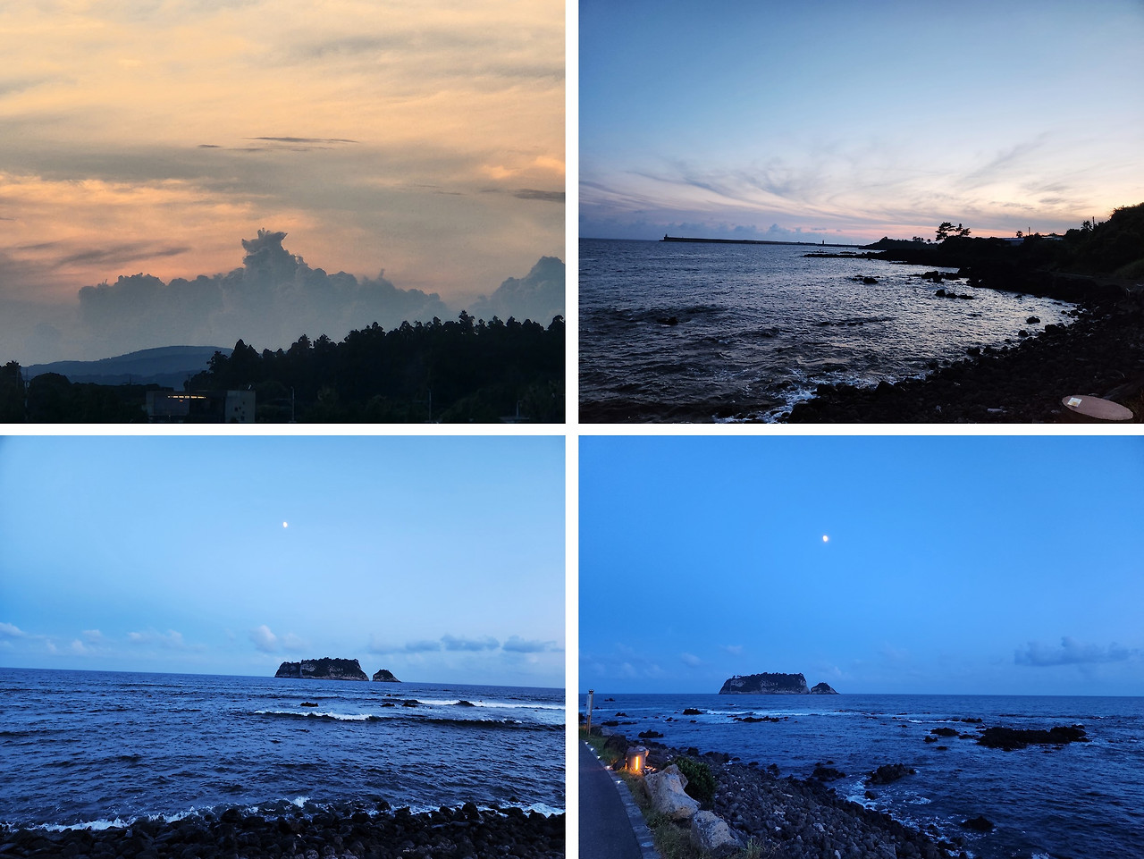 저녁을 먹고 나오니 해가 지기 시작했다. 예쁜 노을을 보며 바닷가를 따라 걷다 보니 제주에 왔다는 게 실감이 났다. 낭만이 느껴지는 바닷가를 보니 연인과 함께 걸었다면 얼마나 좋을까 하는 생각이 아주 잠깐 들었다.