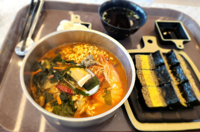 제주에서의 첫 끼는 김만복 김밥의 김밥과 해물라면이었다. 제주에서 유명한 김밥집으로 2년 전 여행 왔을 때 먹고 싶었는데 품절돼서 못 먹었었다. 그런데 마침 호텔 가는 길에 있어서 반가워하며 찾아갔다. 기대가 컸던 탓일까? 김밥 안의 계란은 굉장히 부드러웠지만 특별하지 않은 맛에 비해 가격은 8,500원으로 비쌌다. 9,500원인 해물라면도 제주니까 좀 더 싱싱하고 푸짐한 해물의 양을 기대했는데 여느 김밥집 해물라면과 다르지 않았다. 그래도 안 먹어봤음 계속 궁금했을 텐데 한 번 먹어본 걸로 족했다.