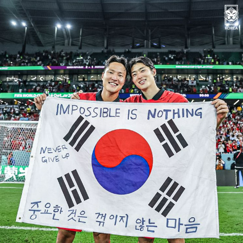 그러다 이 문구가 세대를 아울러 전 국민에게 각인된 순간이 있었으니, 바로 '2022 카타르 월드컵'이다. 당시 대한민국 축구 국가대표팀은 조별예선 3차전에서 포르투갈을 상대로 2:1 역전승을 펼치며 16강에 진출했다. 같은 조 우루과이와 승점, 골득실까지 같았으나 다득점 부문에서 우위를 점해 극적으로 진출한 만큼, 경기가 열린 도시명을 딴 '알라이얀의 기적'으로도 불린다. 이때 선수들이 '중요한 것은 꺾이지 않는 마음'이라고 적힌 태극기를 흔드는 사진이 화제를 일으켰다. 반드시 포르투갈을 잡고 우루과이 경기까지 지켜봐야 하던 역경을 이겨냈기에 문구가 상황에 맞는 명언으로 맞아떨어진 셈이다. 이를 계기로 우리나라 국민 누구에게나 끈기와 희망을 함축하는 긍정적 의미로 다가가는 문구로 관통하며 유행하게 된 것이다.