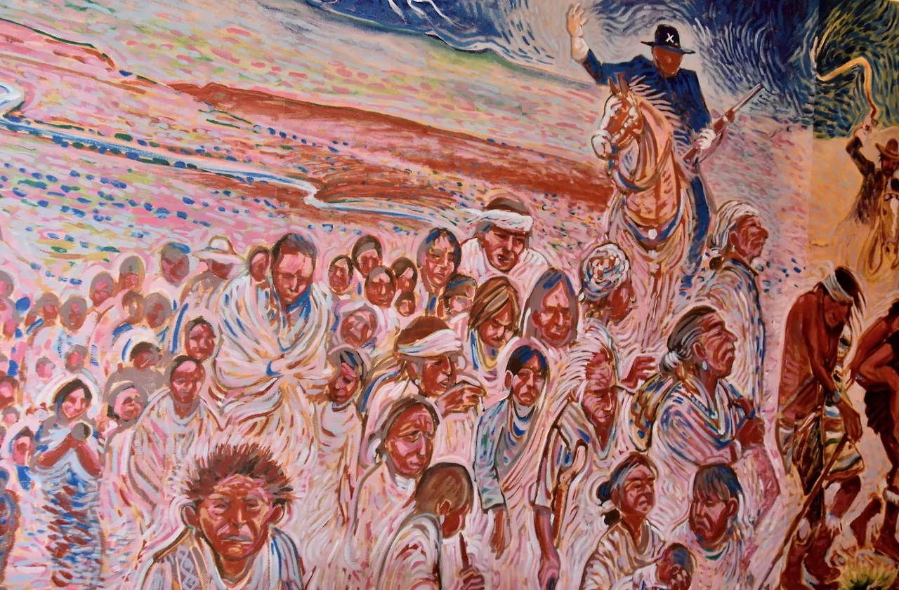이런 키트의 위인전 한편으로, 책의 반대편에는 나바호족이 서 있다. “디네(Diné, ‘사람들’이라는 뜻)”라고 스스로를 불렀던 사람들. 오늘날의 뉴멕시코 북서부에 살면서 자신들만의 문화를 가지고 있었다. 아이가 ‘처음으로 자발적으로 웃었을 때’에 이름을 지어주고, 말타기를 즐겨 말에서 떨어지는 일을 가장 수치스러운 일로 여겼으며, 숫자 4를 신성시해 그들이 사는 땅을 성스러운 네 산 가운데로 삼았던 이들. 남쪽에서 스페인인이 올라오든, 스페인에서 독립한 멕시코인이 오든 나바호족은 절대 굴복하지 않고 계속 투쟁하며 생존해왔다.