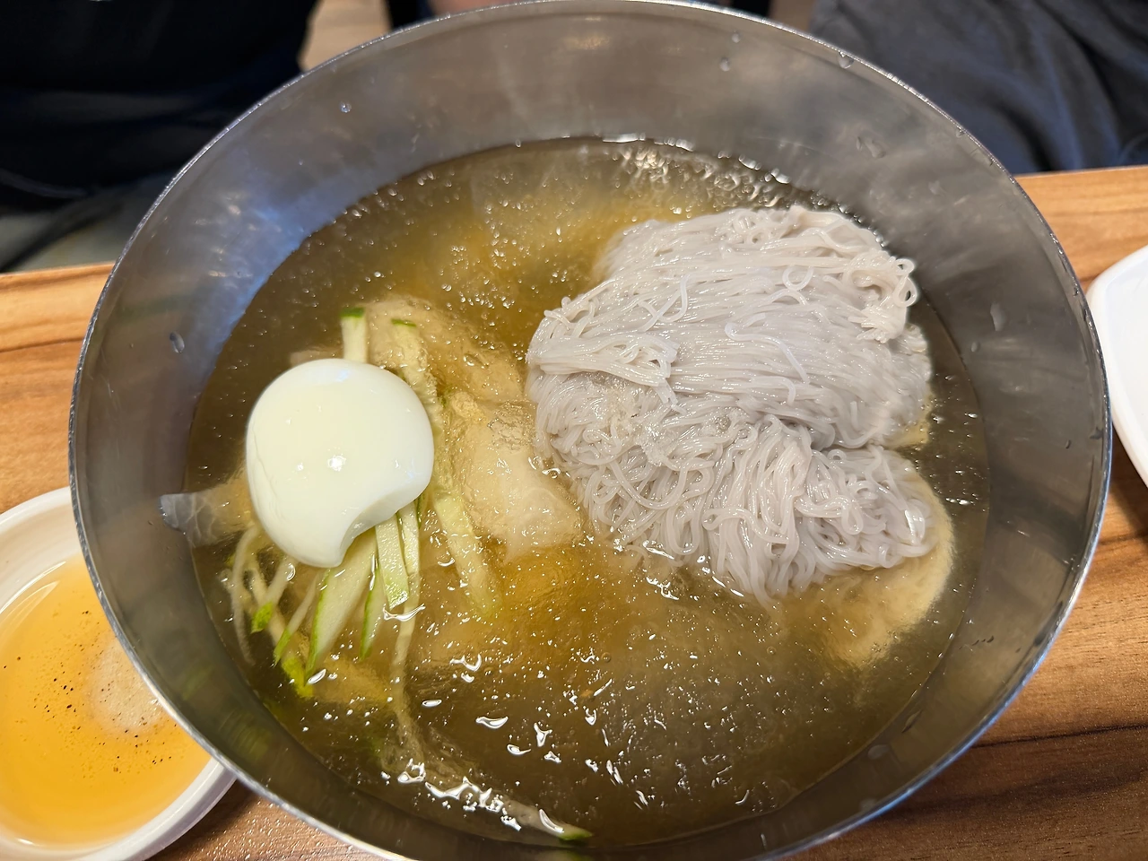 냉면까지 다 먹은 아이들은 핸드폰 세상으로-