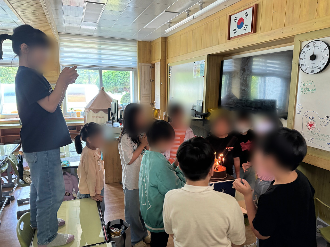 DG이가 눈빛을 빛내며 물었다. 핸드폰은 일과 시간에 꺼내지 않는 게 약속이지만 생일파티인 만큼 허락해 줬다. 아이들은 신나하며 너도나도 가방을 뒤졌다. 그리곤 핸드폰보다 작은 손으로 야무지게 셔터를 눌러댔다.
