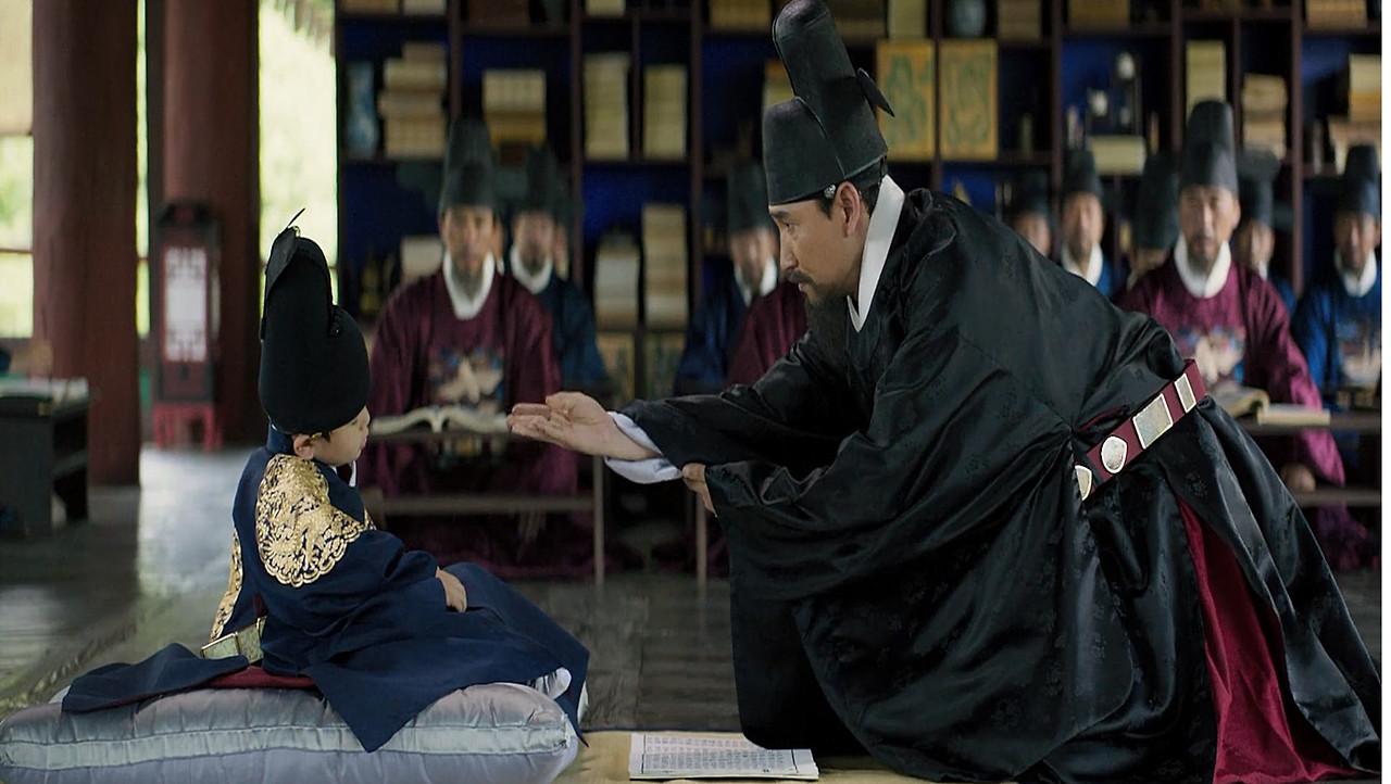 많은 신하들이 어린 세자에게 유가(儒家)의 『십삼경(十三經)』 중 하나인 효경을 강론하다 그만 꾸벅하고 졸음에 빠진 세자. 이에 신하 한 명이 "효경을 알면 잠이 오지 않을 것입니다. 저하"라고 하며 손에 물을 묻혀 세자의 얼굴에 뿌려 잠을 깨운다.