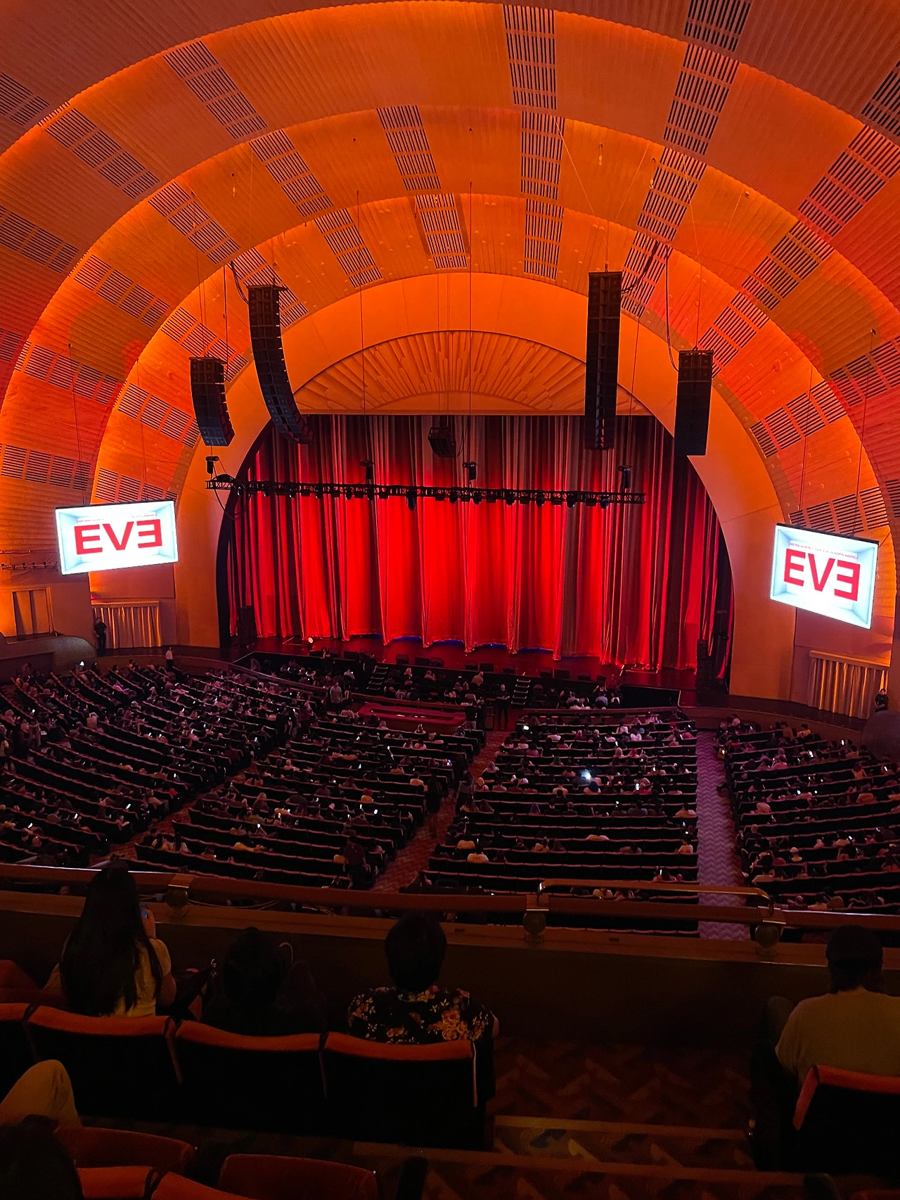 콘서트는 미드타운의 전설적 콘서트홀인 radio city music concert hall에서 열렸다. 락펠러센터 그룹이 1920년대에 ‘미국민들을 위한 쇼플레이스’로 헌정/오픈한 곳인 만큼, 특유의 고풍스러움과 웅장함이 엄청나다. 관광객일때, 뉴욕의 홀리데이 시즌 테마쇼 "Christmas spectacular" 보러간 게 첫방문이었던지라, 아니 이런 곳에서 팝스타 공연도 하나? 싶었는데 알고보니 쇼비지니스의 명당답게 비욘세, 레이디 가가, 테일러 스위프트 등 기라성 같은 팝스타들이 단독공연을 펼친 곳이라고! 확실히 음향, 사운드, 프로젝트 화면 등 뭐하나 빠지는 것 없었고 각 열마다 단차가 있어서 어느 자리에 앉든 잘보였다. 약간 구식 극장 의자였지만 쿠션이 빵빵해, 2시간 반 넘는 시간동안 오히려 너무 편하게 즐겼다.