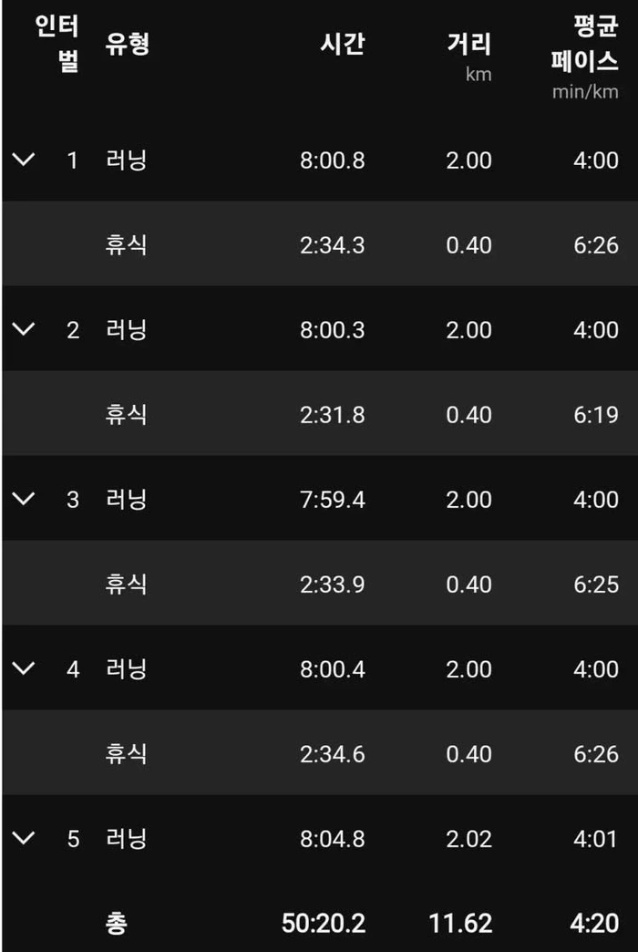린 후 (약 5분간 완전휴식) 다시 한번 5km