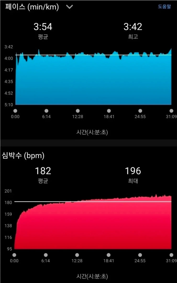 5km T.T를 하고 나서 심박수를 충분히 떨어트