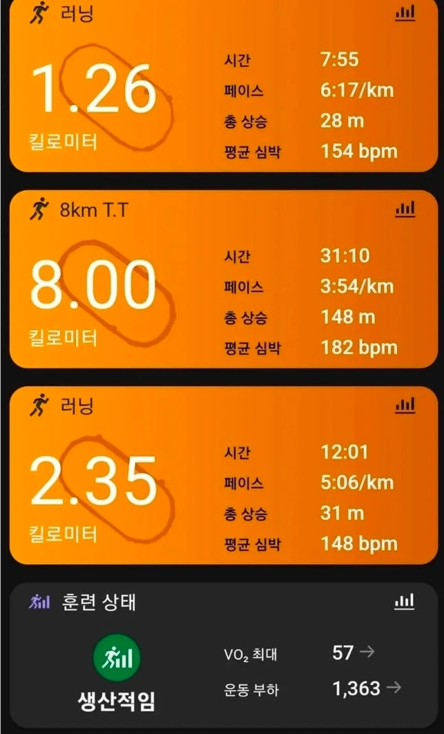 8km T. T훈련은 5km와 10km의 중간 지점 이