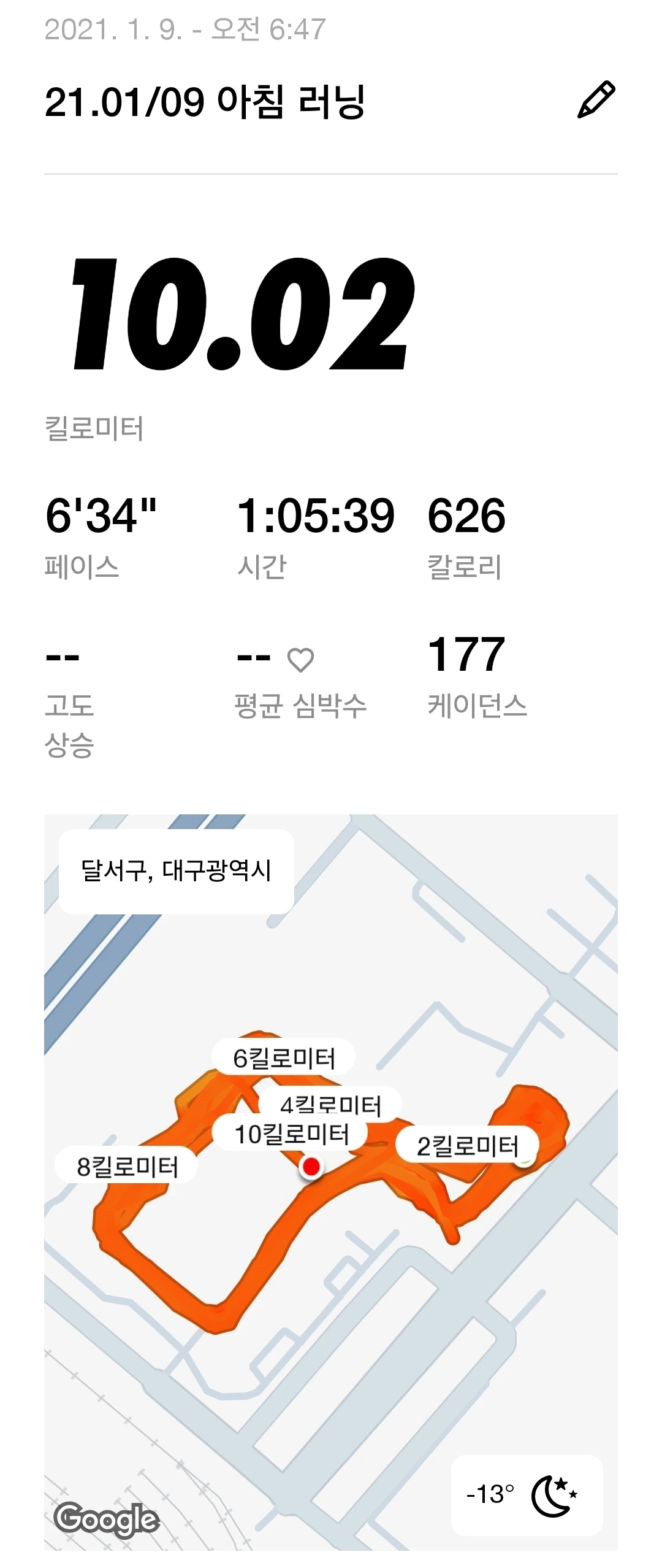 첫 달리기 이후 주 3회 이상은 꾸준히 달렸고, 매번