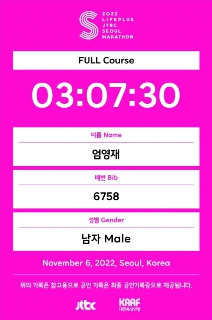 째 풀코스 마라톤에서 싱글을 성공했다.
