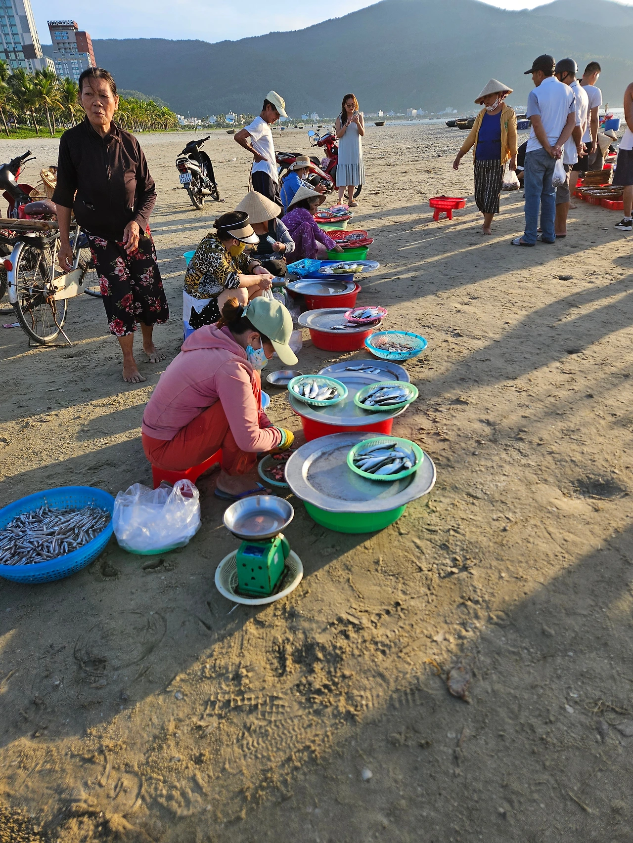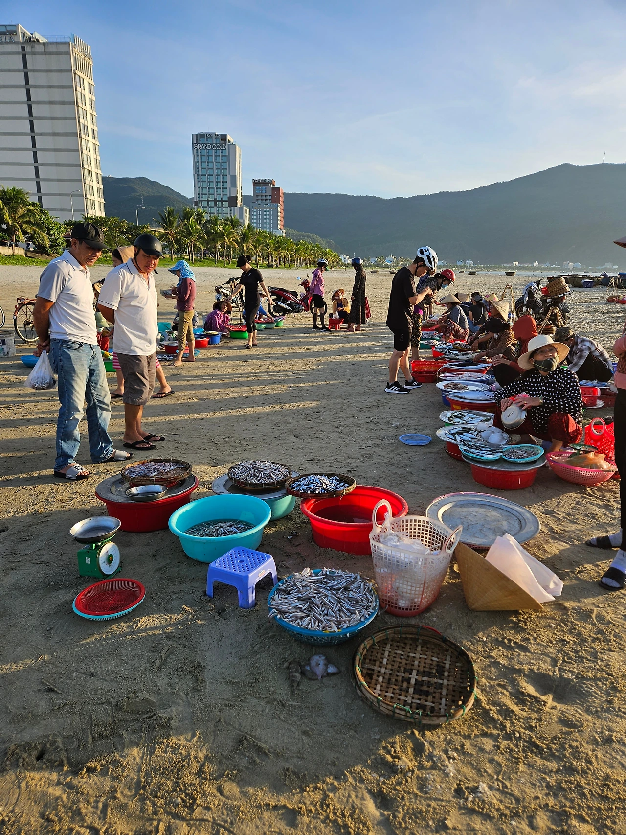해변 한쪽의 즉석 어시장에서는 파는 사람도, 사는 사람도 서로의 얼굴에 웃음을 얹는다. 맨발로 뛰는 아이들, 단체로 몸을 움직이는 사람들, 미케해변은 늘 누군가의 현재로 가득하다.