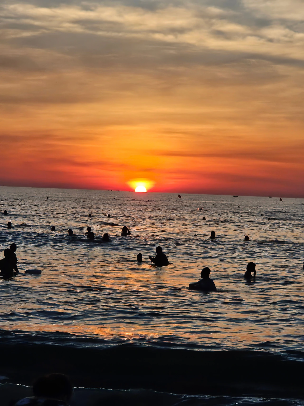 수평선 위의 해가 느릿하게 물속으로 잠기면, 사람들은 스러져가는 마지막 화려한 빛을 말없이 배웅한다. 누군가는 카메라를 들고, 어떤 이는 조용히 눈을 감는다.