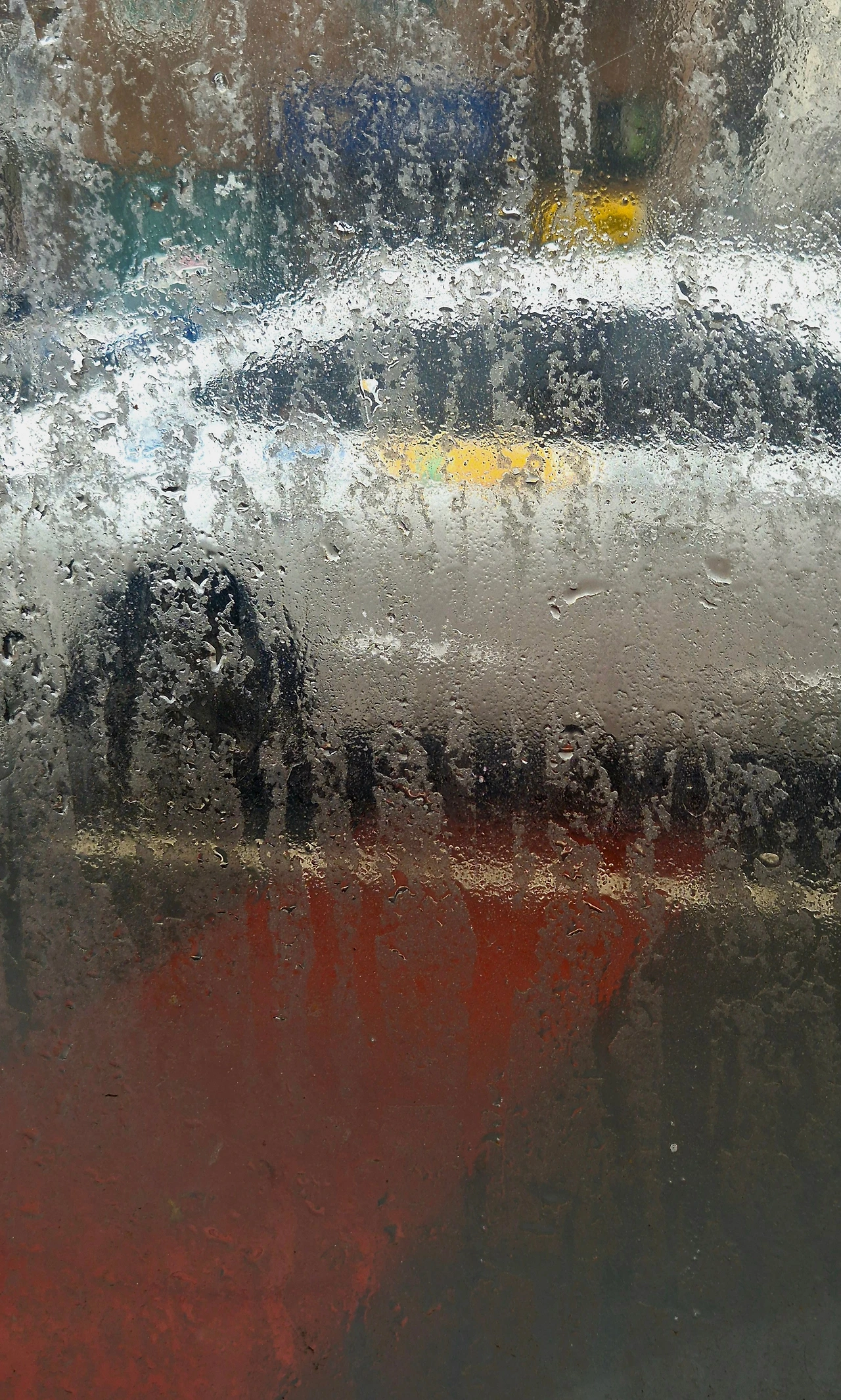 봄비 속 창밖 풍경도 노랑 초록 빨강 하양