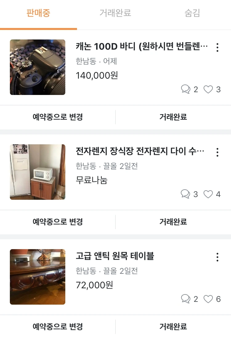 쉬운 것부터 시작해야 한다. 지금까지 사용한 적도 없고, 딱 봐도 필요 없게 생겼고, 앞으로도 쓰지 않을 것 같은 그런 녀석들부터 말이다. 눈에 띄는 곳에 있는 녀석들부터 차례로 사진을 찍어 '당근 마켓'에 올렸다. 당근 마켓은 위치 기반의 중고나라라고 생각하면 쉽다. 본인과 가까운 거리에 있는 사람들에게 물건을 노출시켜주고, 중고나라처럼 업자가 아니라 개인 간의 거래가 활발하기 때문에 신뢰도도 중고로운 평화나라보다는 높다.