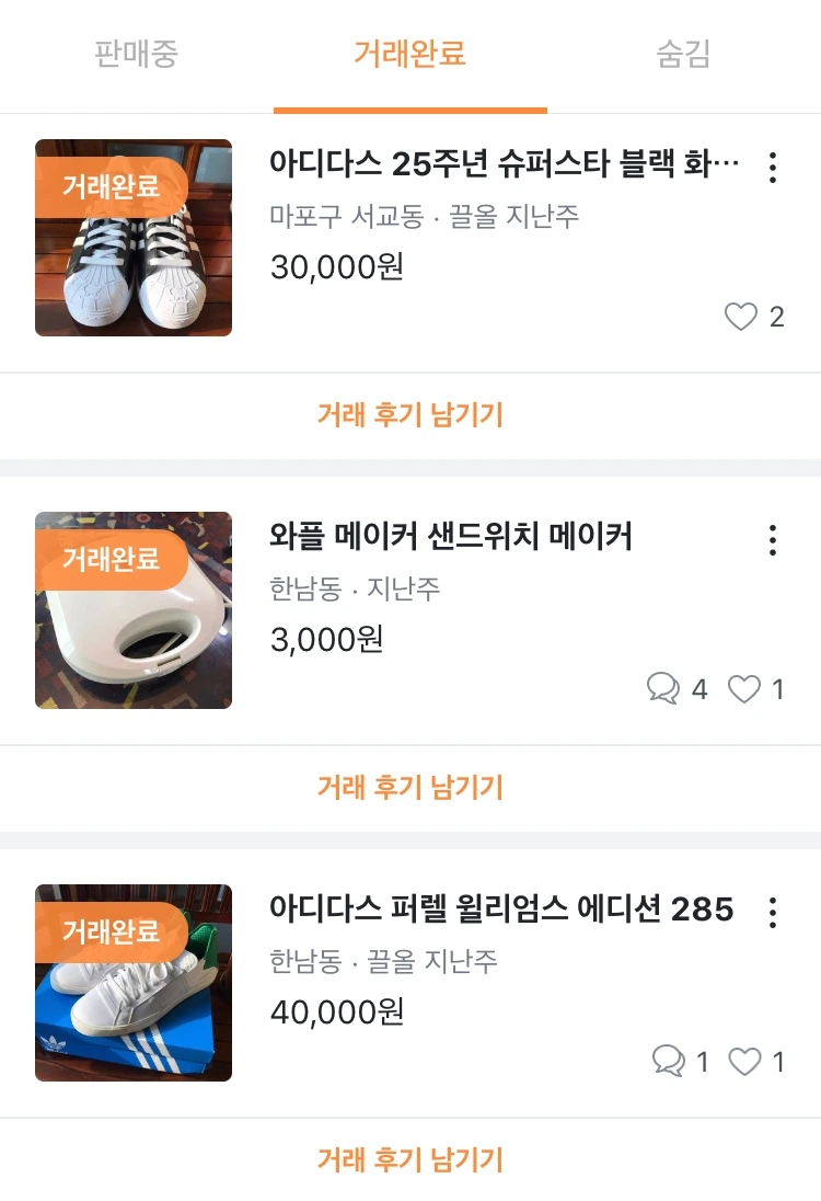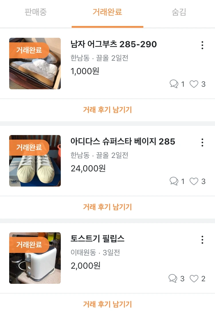 방금도 아디다스 신발 1개, 어그부츠 1개, 토스트기 1개를 팔았다. 거래하기로 한 시각이 있었는데 휴대폰을 무음으로 해둔 탓에 약속 시간에 늦었다. 존중과 신뢰에 대해 쓰는 동안 아이러니하게 신뢰를 깨는 행동을 했다. 부랴부랴 달려가서 사과를 드렸다. 다행히 시간이 크게 지나지 않아 거래는 순조롭게 되었고, 나 역시 그 아주머니를 떠올리며 정돈된 박스와 쇼핑백에 물건을 담아 드렸다. '잘 쓰세요'라는 말을 미소와 함께.