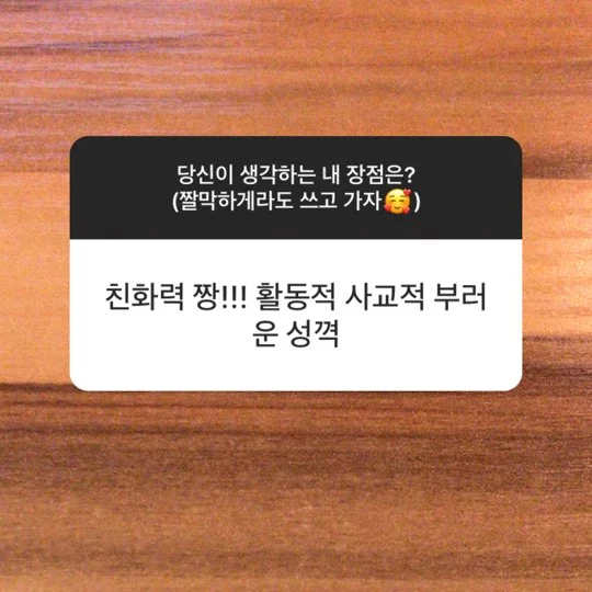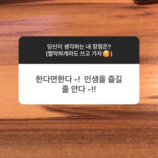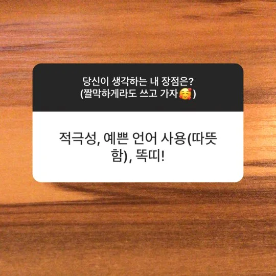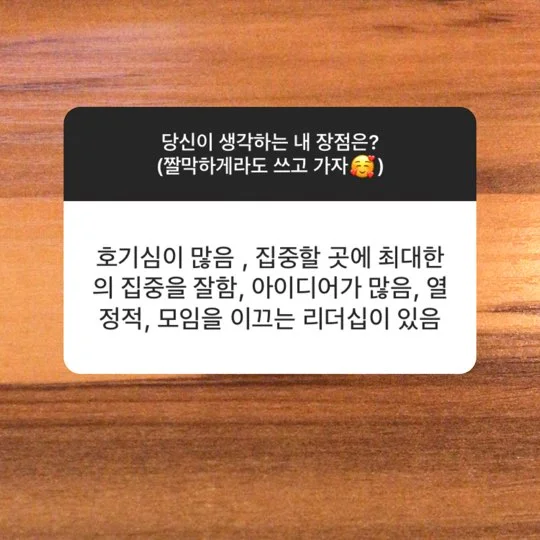 그리고 주변 친구들에게 자신의 장점을 한 번 물어보라는 첨언도 해주셨다. 내가 누군가 실행력 하나는 둘째가라면 서러울 정도로 빠른 남자! 바로 실행에 옮겼다.