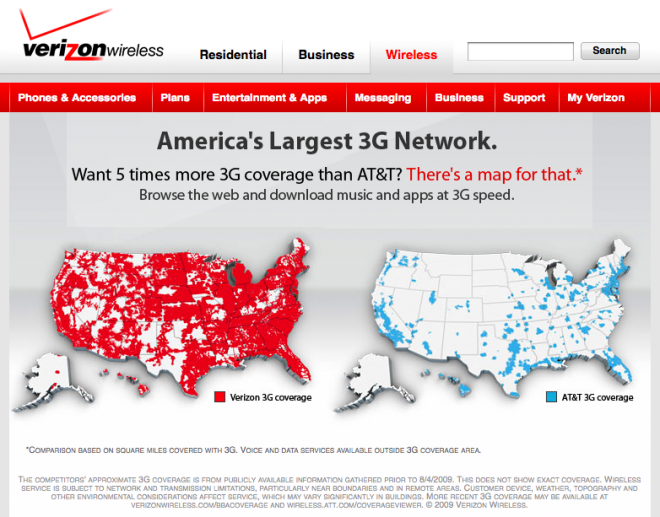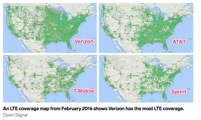 사진에서 보듯 버라이존은 압도적인 네트워크 망을 자랑했던 반면 AT&T는 어떻게 했을까?
