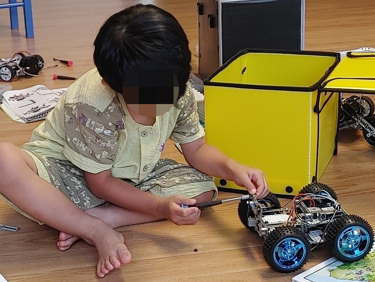 형아가 방과 후에서 하겠다고 하다가 시시하다며 포기한 로봇 블록(레고에서 조금 더 진화한 레고와 코딩 로봇 중간쯤?)으로 무언가 뚝딱거리며 만들기 시작하더니 언젠가부터는 드라이버와 나사가 있어야 만드는 로봇까지 넘보기 시작했다. 올해 2월 경 둘이 로봇 재료 가지고 싸우기에 중고마켓에서 2만 원에 2세트씩이나 들고 와서 쥐어주면서는 둘이서 각각의 로봇 만들기에 심취한 적도 있었다.