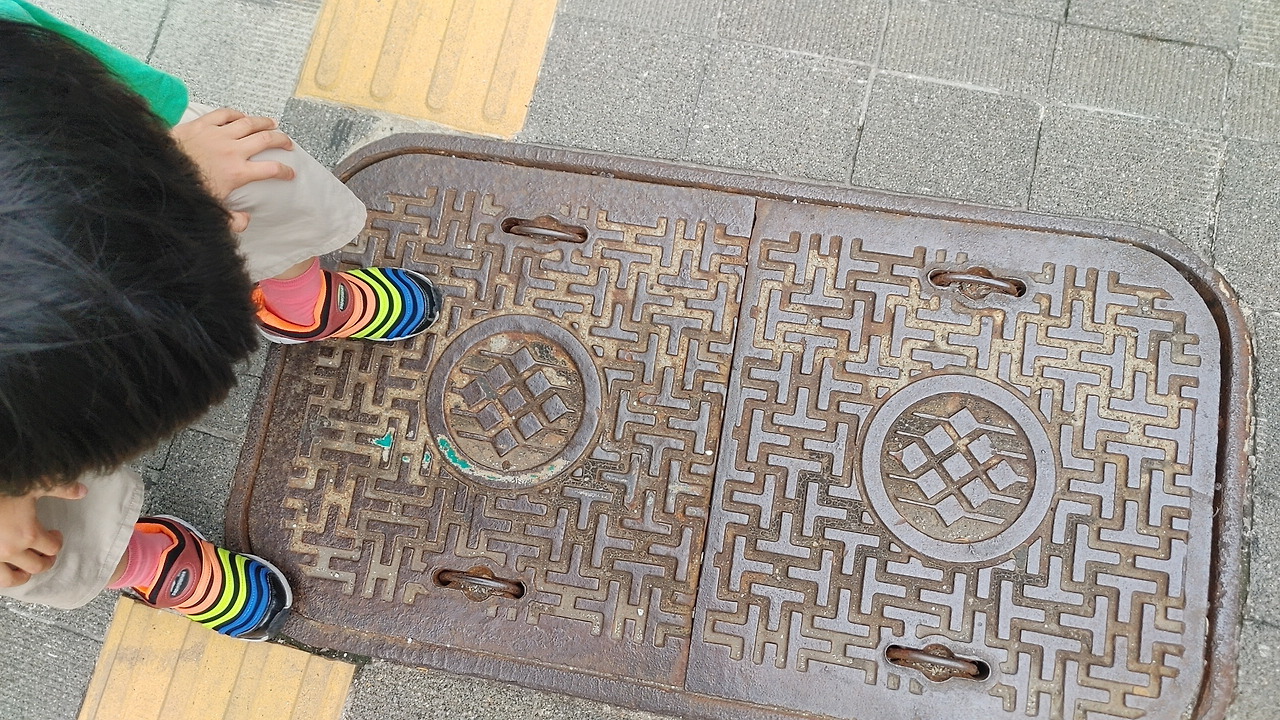 "ㅇㅇ야, 요거 뭐라고 써있는지 한 번 볼까?""오...수?""오수 라고 씌여있지? 그럼 이 구멍 안에는 뭐가 있을까?"알쏭달쏭해 하는 아이에게 오수의 한자어를 풀이해 주었다."汚(더러울 오) 水(물 수) 그러니까 이건 더러운 물이 지나가는 곳이겠다. 그치?"