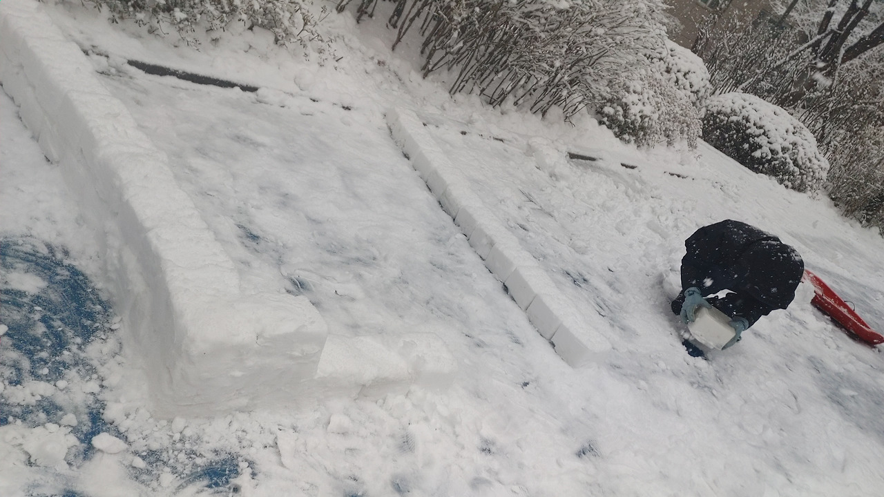 눈이 오면 자동으로 바깥으로 나가게 된다. 이글루는 매년 만드는 큰아이의 트레이드 마크같다. 반나절은 거뜬하니 보낼 수 있으니 체력 고갈(?)을 위해서도 필수코스다.^^