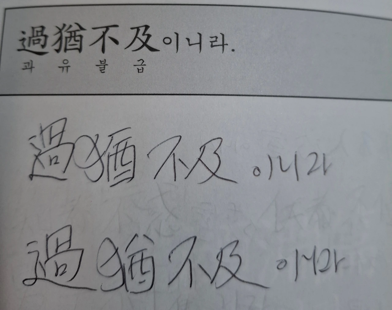 김에 싸서 맛나게 저녁 먹고 입술 한 가득 티내고 있던 작은 아이와 중얼중얼 과유불급을 외치며 필사중인 마눌님을 보며 남편님께서 남기신 오늘의 어록입니다.