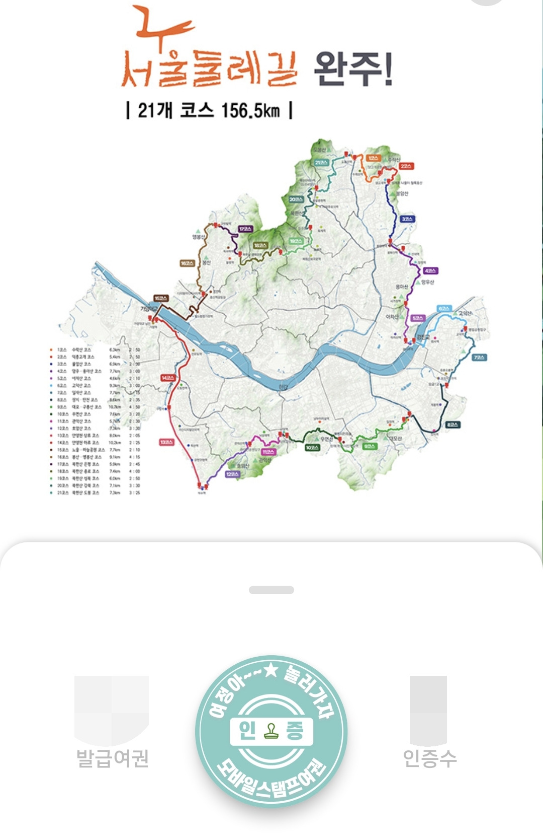 QR 인증이 종료되면서 새로 생긴 앱인 것 같기도 한데 무튼 산을 오르면서 침 튀겨가며 남편한테 자랑해서 기어코 남편님도 인증 앱을 깔게 되었고, 저희 부부 모두 서울 둘레길 여권을 발급받았습니다.