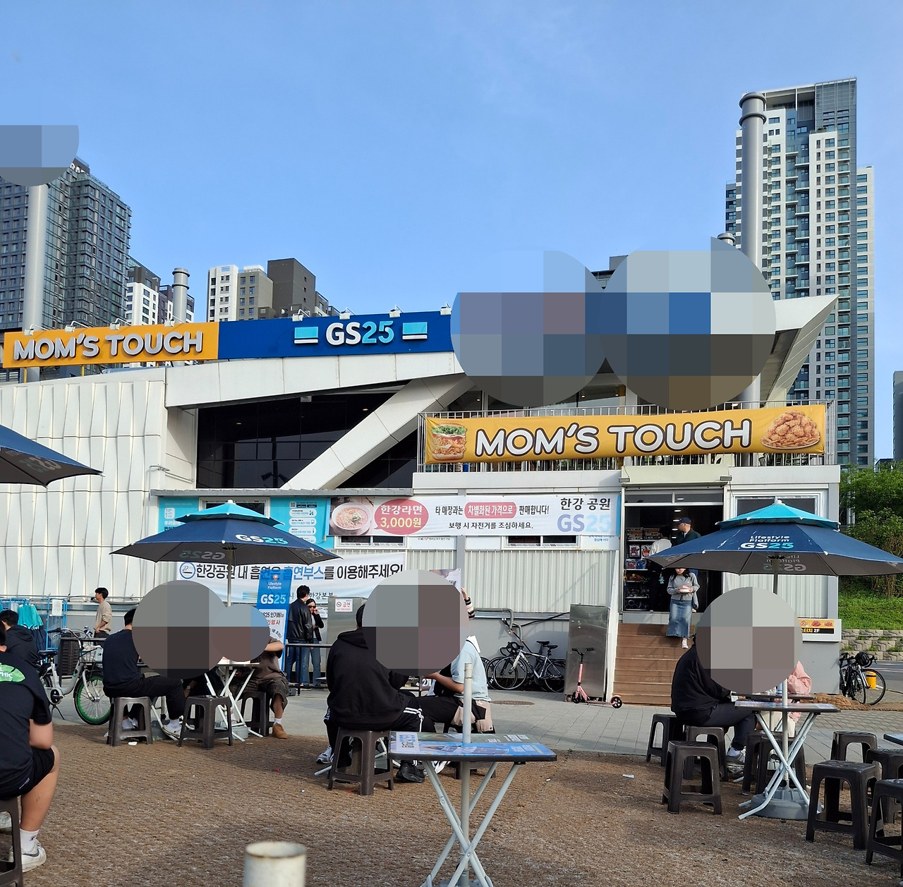 한강공원 내 편의점에 모처럼 자리잡고 라면을 먹습니다. 컵라면은 몇 번 먹었지만 온 가족이 한강라면으로 먹는 건 처음인 듯도 하네요.