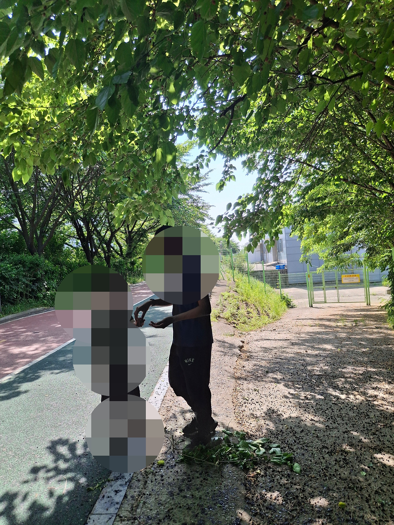 무심히 지나치는 사람들과 달리 못 지나가고 다닥다닥 붙어서 신나게 따먹는 저희 아이들.
