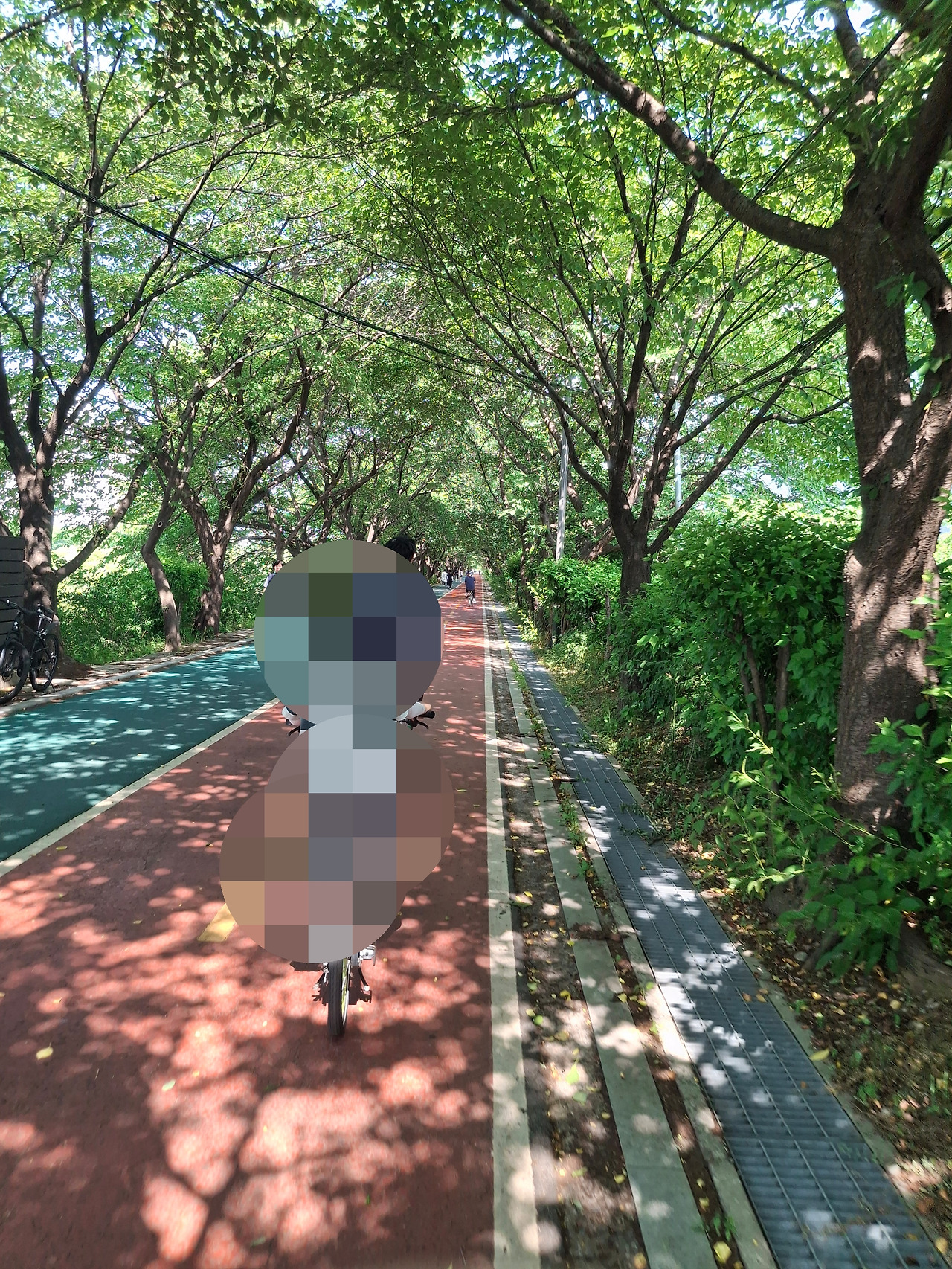 뜨거운 뙤약볕이 한강을 달구다보니 얼마 달리지도 않았는데 땀이 줄줄 흐릅니다. 그래도 두 아이 모두 지친 기색 하나 없이 페달을 힘차게 밟지요.