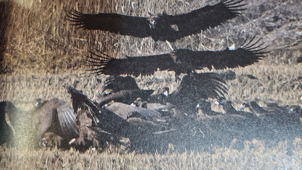 자연학교를 운영하며 만나게 된 아이들과 독수리먹이를 뿌려주는 이야기를 마치 현장에 있는 것처럼 섬세하게 묘사하고 있었는데요. 풍성한 화보 속 독수리 떼들을 바라보자니 누군가의 죽음이 누군가에게는 생명 유지를 위한 축제의 장이 될 수도 있구나라는 걸 깨닫습니다.