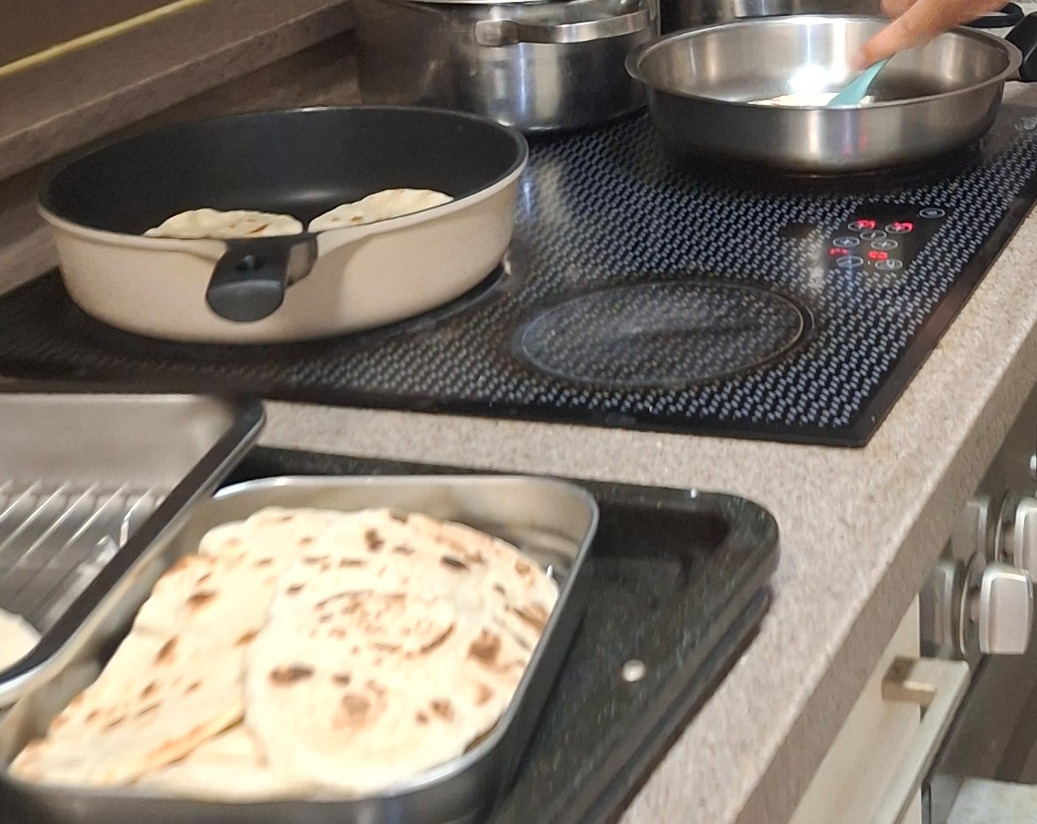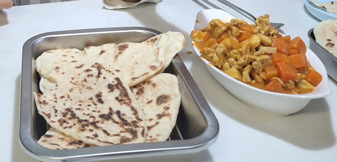큰 아이가 반죽하고 작은 아이가 성형하고, 다시 큰 아이가 후라이팬으로 구워내는 난과 커리로 저녁을 만들어 먹고는 선선한 저녁 시간을 이용해 숲으로 향합니다.